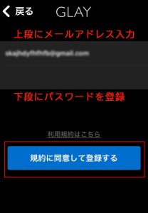 - お使いのメールアドレスとご自身で設定したいパスワードを入力します